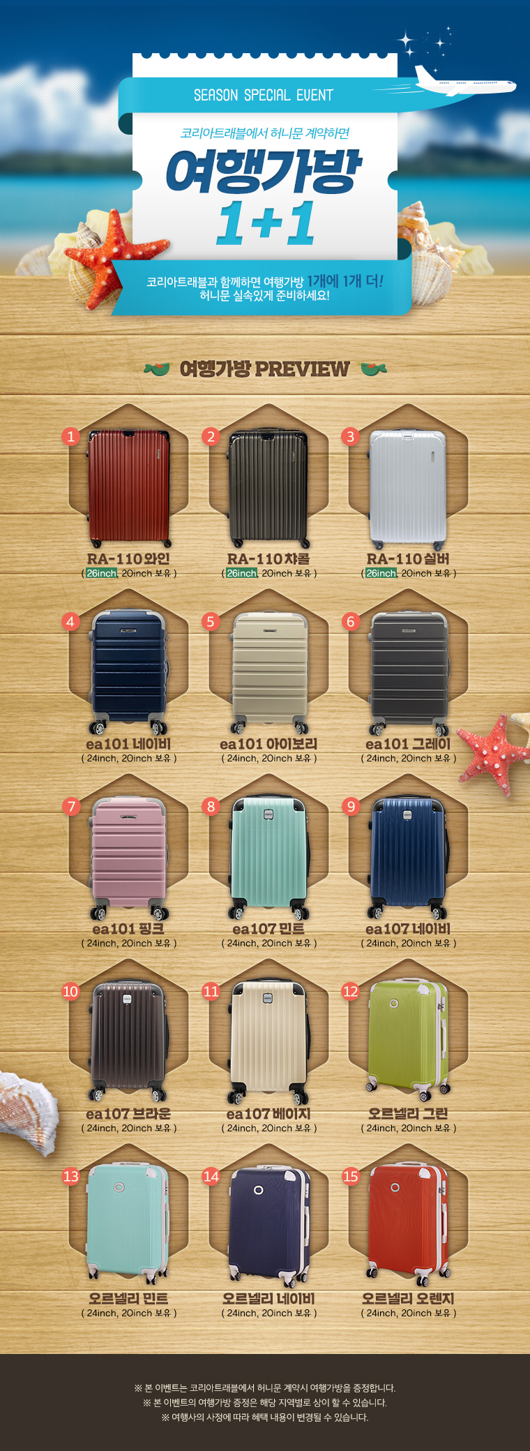 여행가방 1+1 증정이벤트